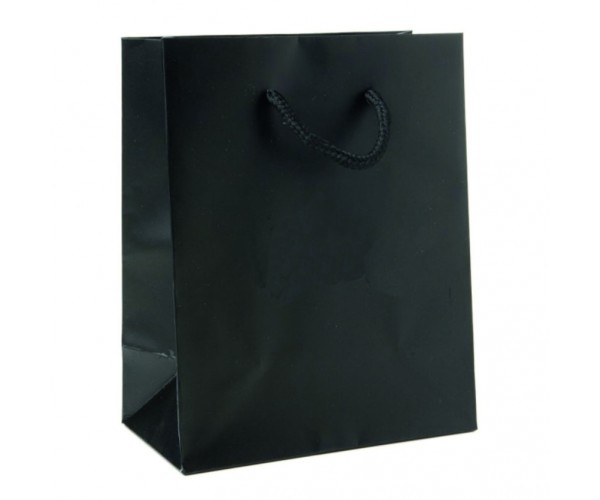 Este saco de papel couché 200 grs, laminado a brilho ou mate, com alças de cordão tecido é perfeito como saco para joias.