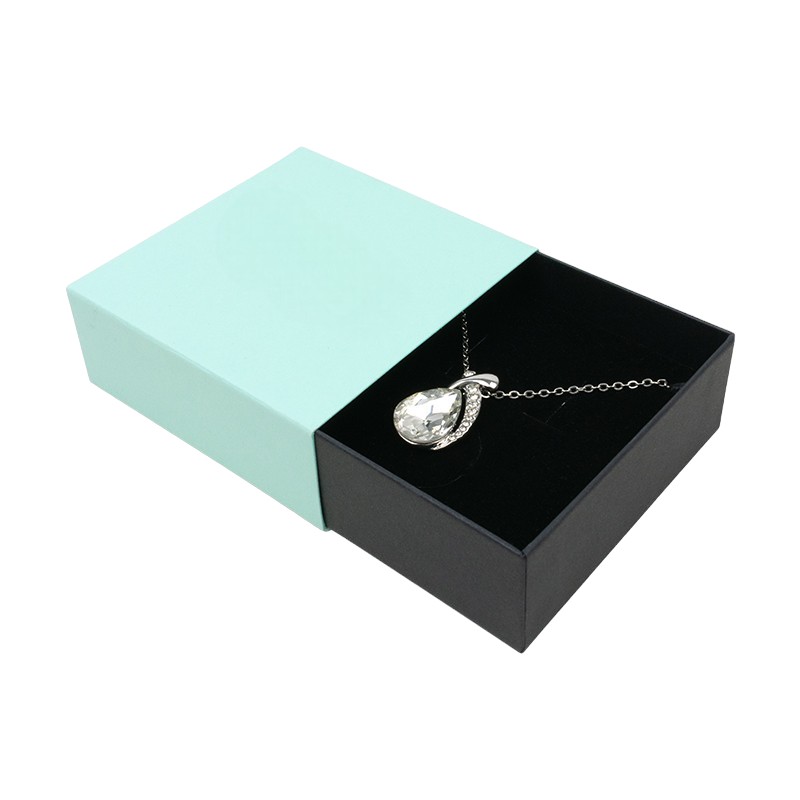 Caixa de cartão para conjunto (anel, brincos e fio) forma de gaveta.